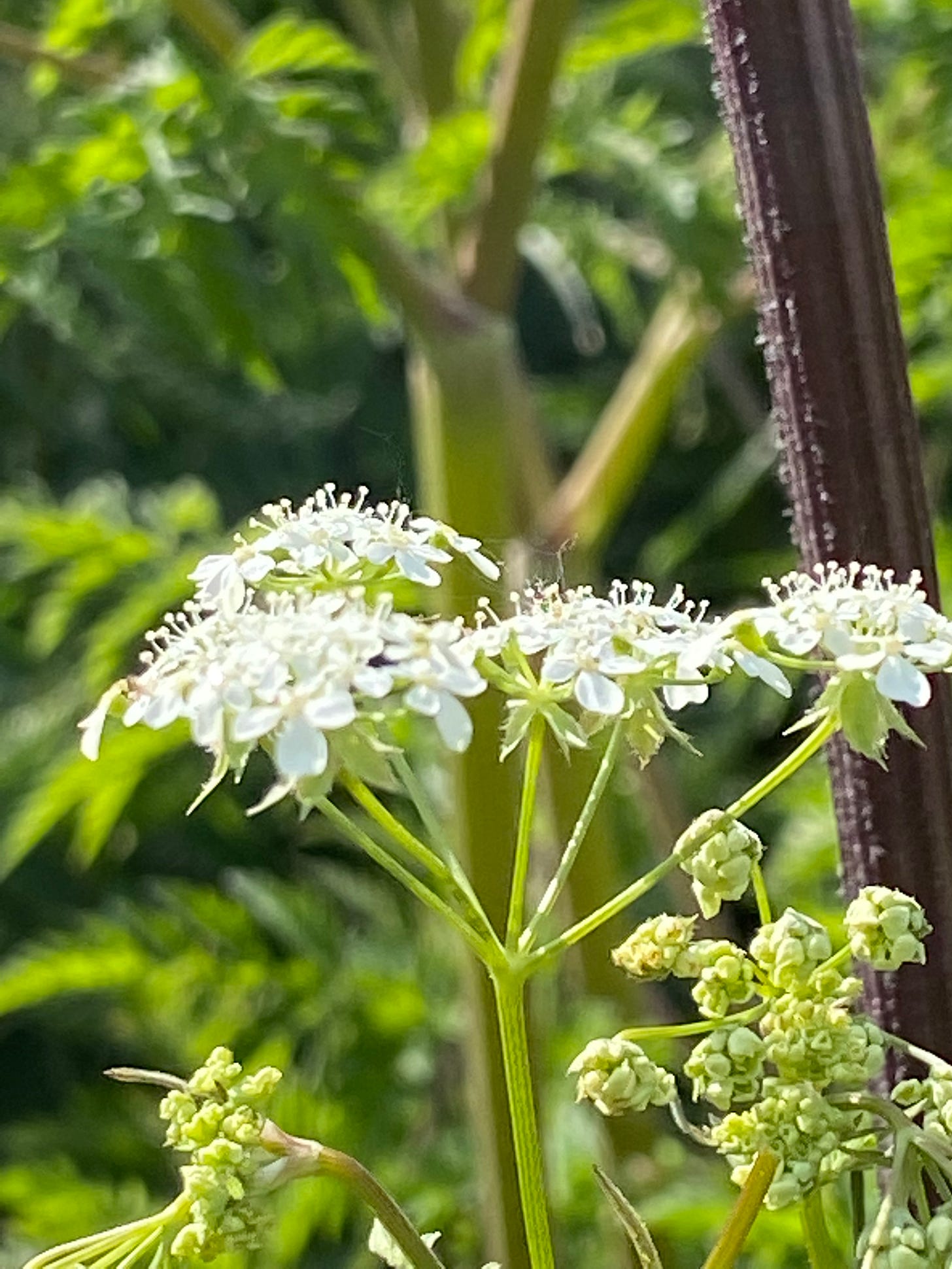 Another white flower has appeared by the house with delicate looking starry flowers, reminiscent of Greater Stitchwort. The petals are more pointed, but I believe it's Lesser Stitchwort. Then there are fantastic displays of a white Umbellifer just about everywhere. The whole family fills me with dread when it comes to identification and I think back to the botany practical exam at the end of my second year. We had learned about plant classification but nothing had prepared us for one task. We were presented with three different white flower umbels labelled A, B and C. At a glance they looked identical, but we had to devise a key to enable someone to distinguish between them and identify each one. Our success in our degrees did not rely upon rote learning facts and regurgitating them and I think that was one of the hardest exams I ever sat. Talk about being put "on the spot." Let's forget that and just enjoy the beauty shown below.